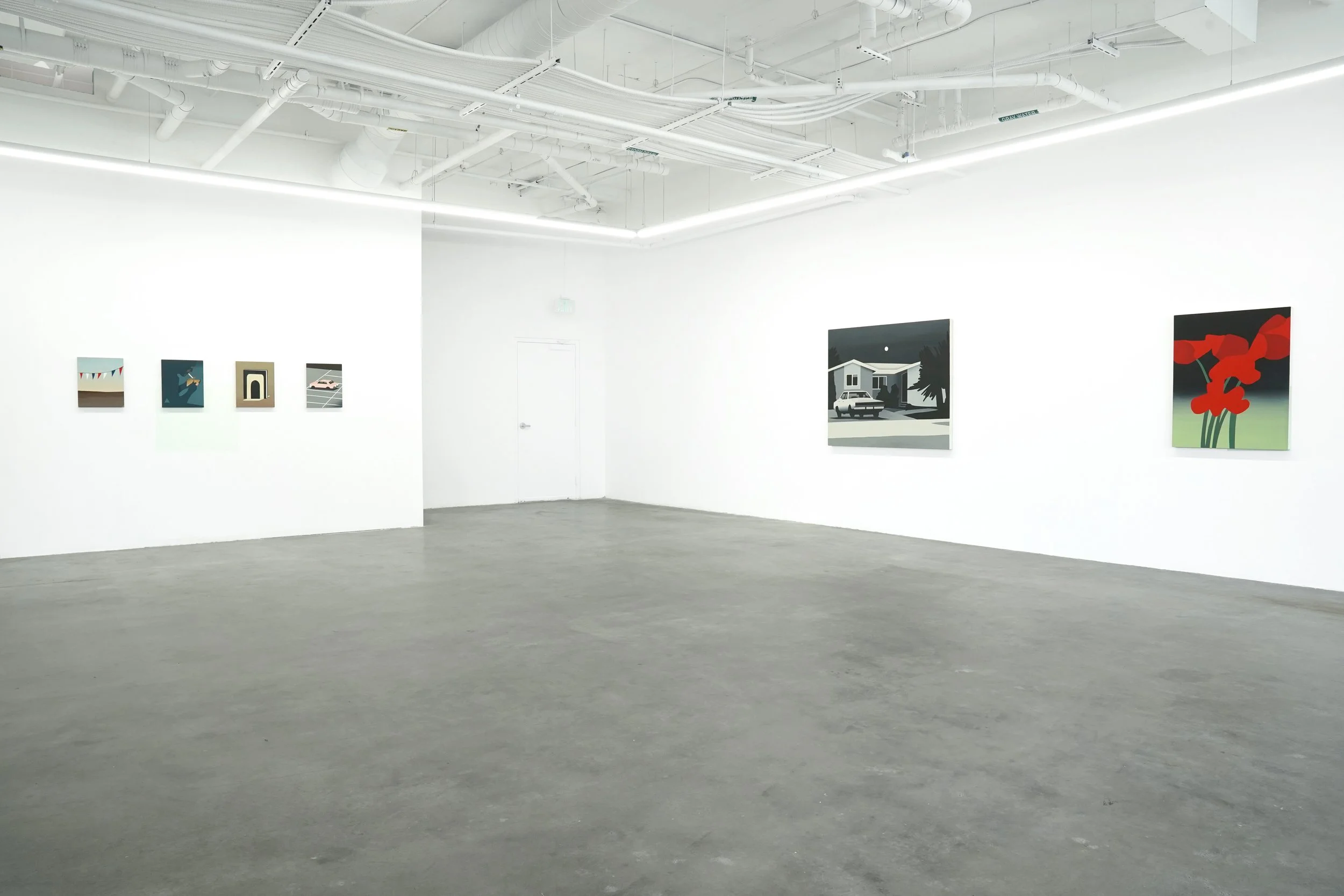 Arranged chronologically from dawn, twilight, to the depths of midnight, looping again toward sunrise, the works mirror the rhythm of a single day, echoing the passage of time and the cyclical nature of reflection. Saturated tones drawn from 1970s and 80s cinema infuse the canvases with warmth and longing, conjuring atmospheres that feel both personal and universal.